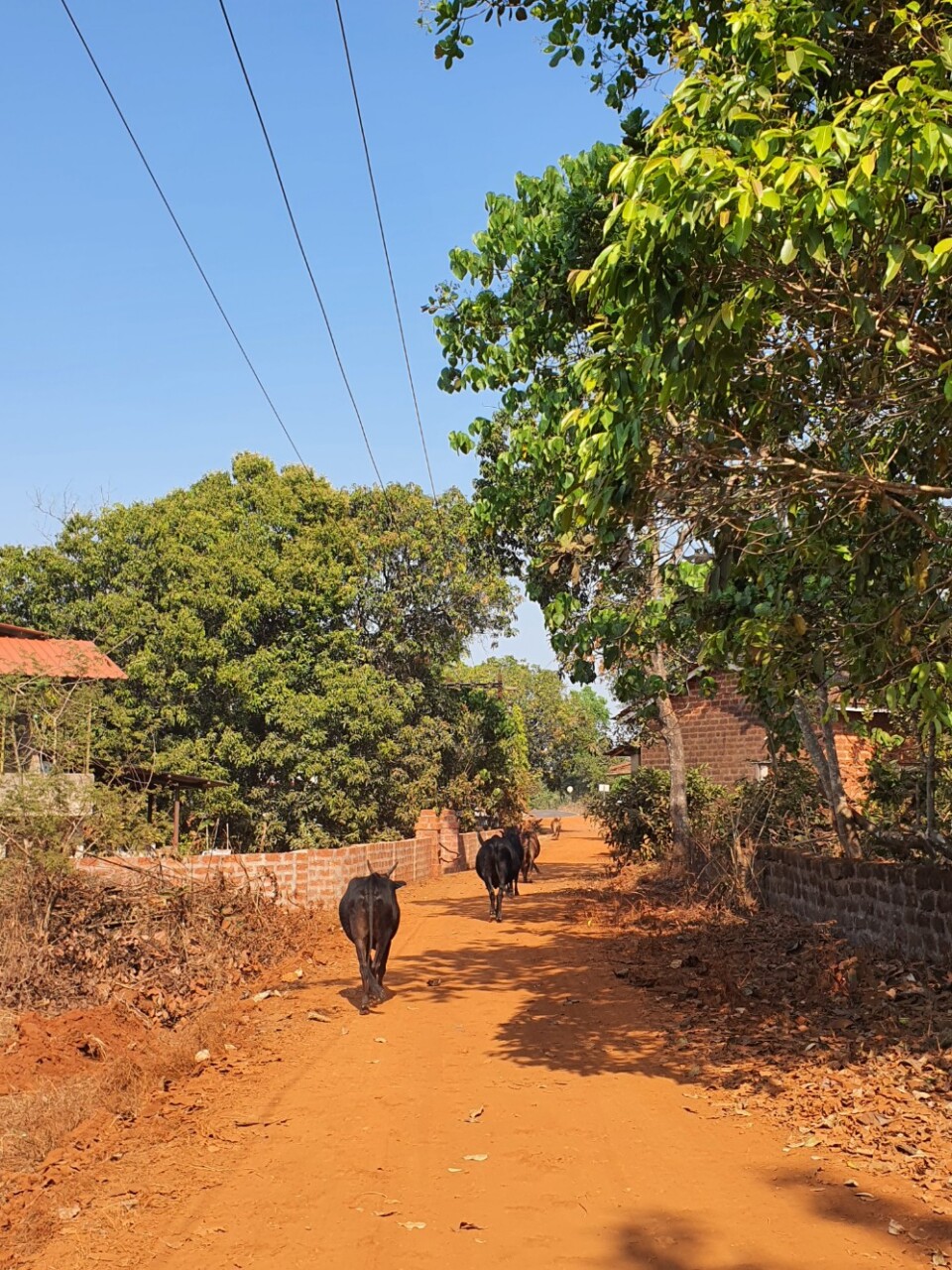 Schließlich brechen wir auf. Auf geht es mit dem Motorrad den schmalen Erdweg entlang zurück zur Hauptstraße. Und wir werden schon erwartet. Auf etwa halbem Weg steht DIE KUH. Daran, wie sie zu uns aufschaut und losrennt, als wir umdrehen, um zurück zum Haus zu fahren, merken wir, dass es tatsächlich die gleiche sein muss. Und auch heute ist sie uns nicht wohl gesonnen. Wobei wir wirklich sofort umgedreht haben, als wir sie entdeckt haben. Das war auch gerade noch rechtzeitig, denn wieder entkommen wir ihr nur knapp. Wären wir auf einer asphaltierten Straße, hätte die Kuh sicherlich keine Chance, aber sie scheint sich ihrem Vorteil der buckeligen Erdpiste bewusst zu sein. Diesmal haben wir das halbe Dorf als Zeugen. Ein Nachbar winkt uns kurz darauf zu, dass wir jetzt schnell fahren sollen. Und das tun wir auch. Lachend aber auch mit einem kleinen Schock.