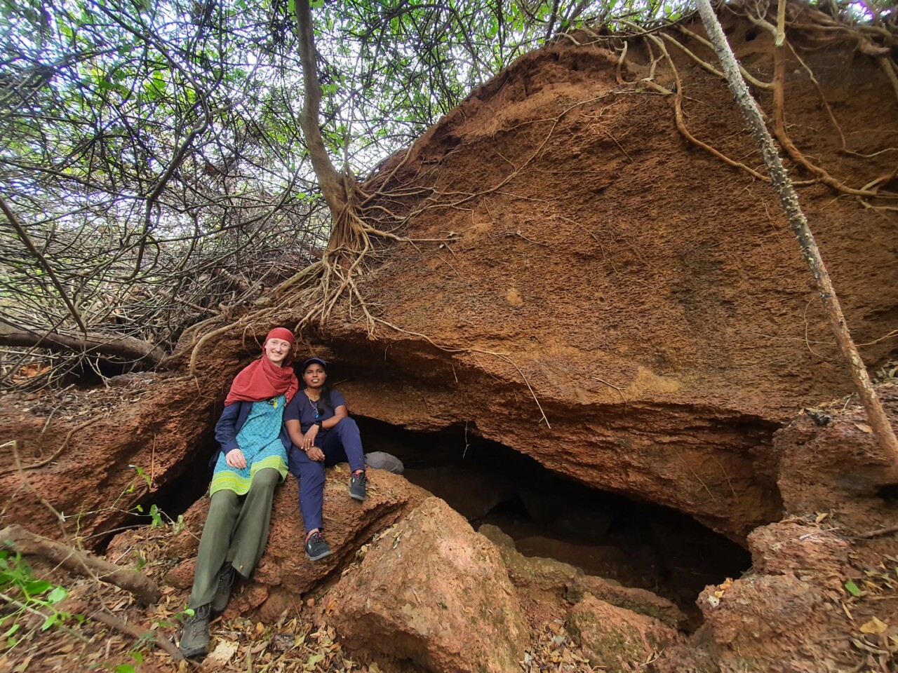 Am Mittag brechen wir mit dem Mangoonkel (eigentlich Nachbar) auf, er will uns eine Höhle zeigen. Während er mit Flipflops und einer Machete losläuft und uns im Gebüsch immer wieder einen Weg freischlägt, fühle ich mich in meinen Wanderschuhen leicht overdressed. Aber ich habe auf dieser Reise ausschließlich die Wanderschuhe und ein Paar Flipflops dabei und da sind mir für so einen Ausflug die festen Schuhe dann doch lieber. Zwischendurch (als wir mitten im Wald sind und viel Schatten haben) deuten sie mir an, ich soll mein Tuch lieber wieder als Kopftuch tragen und möglichst viel Gesicht bedecken. Chichi erklärt, dass hier scheinbar Pflanzen wachsen, die bzw deren Blüten einen Juckreiz auf der Haut hervorrufen. Nach ca. 45 min sind wir an der Höhle angekommen. Sie ist klein aber sehr kühl. Wir bleiben einen Moment hier und machen uns dann wieder auf den Rückweg.
